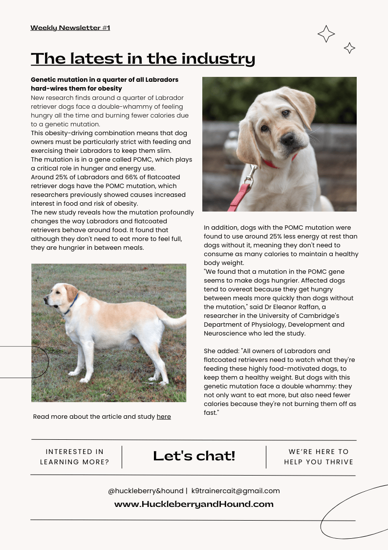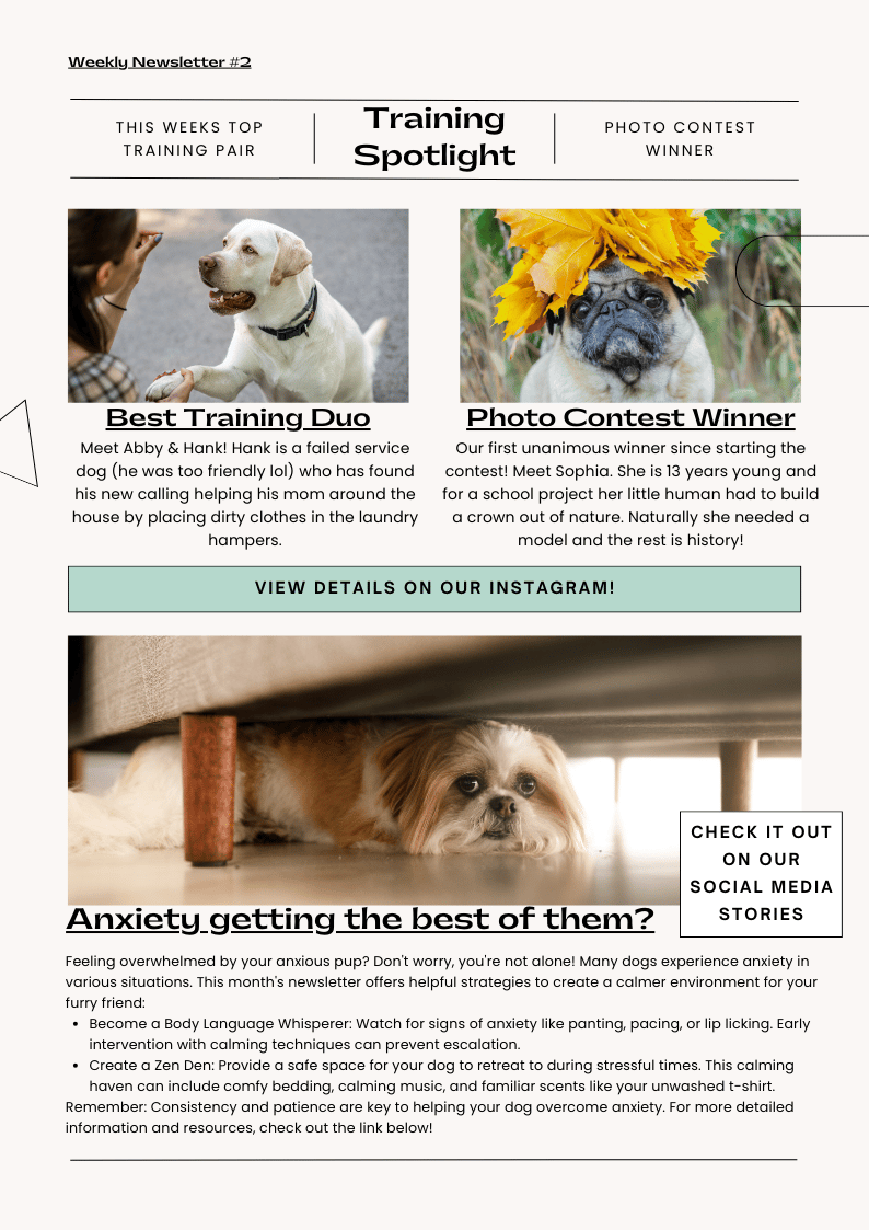 Post a pic of your pup with the newsletter to Instagram and tag us!